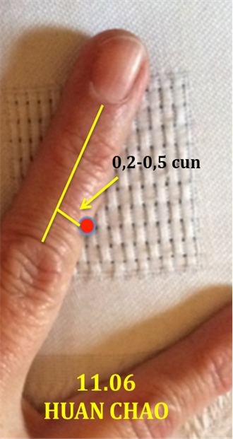 0,5 cun desde el centro de la falange en el lado dorsal