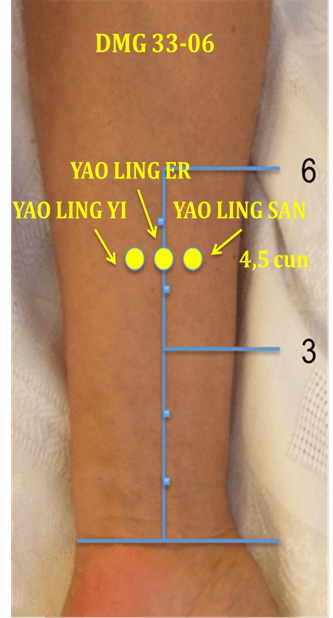 YAO LING ER: Se localiza a 4,5 cun del pliegue transversal de la muñeca , de Pc7