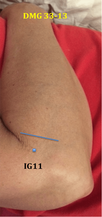 Ubicados uniformemente en el antebrazo en una línea transversal que se situa a 0,8 cun distal a IG11