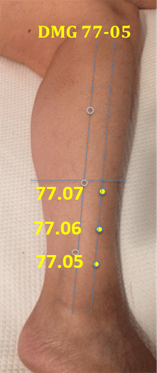 YI ZHONG 77.05: 3 cun proximal al maléolo lateral y 1 cun anterior al borde anterior del peroné. Entre la tibia y el peroné. (Este punto se corresponde con VB39 de MTC)
