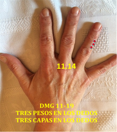 ZHI SAN ZHONG ER: Punto central, en la mitad de la linea que separa la 1ª y 2ª falange