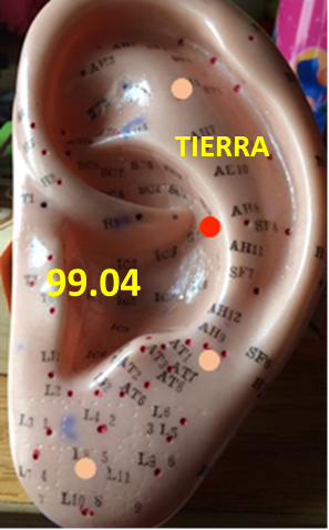 TU ER: en el punto medio de la concha de la oreja. Entre la parte superior e inferior de la concha