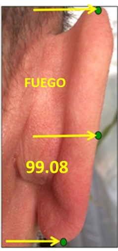ER BEI: en el punto medio de la concha de la oreja. Entre la parte superior e inferior de la concha